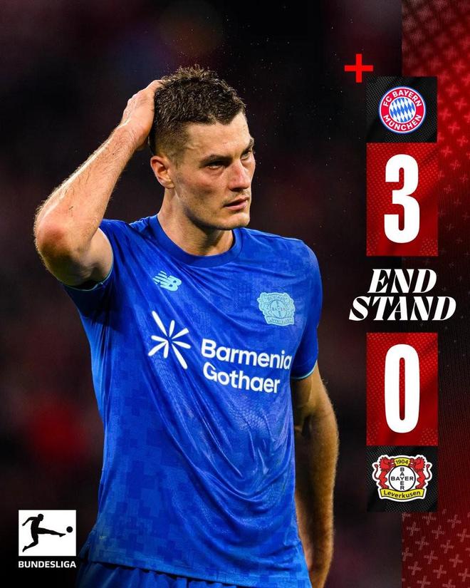 德甲第9輪,勒沃庫森客場0-3不敵拜仁慕尼黑,德甲客場連續37場不敗紀錄遭終結。
